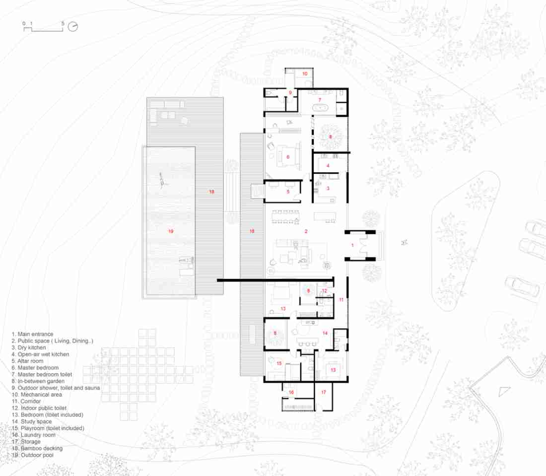 Mặt bằng kiến trúc biệt thự hiện đại như resort mini trên khuôn viên 40.000m2 ngắm trọn hồ và núi tại Ba Vì.