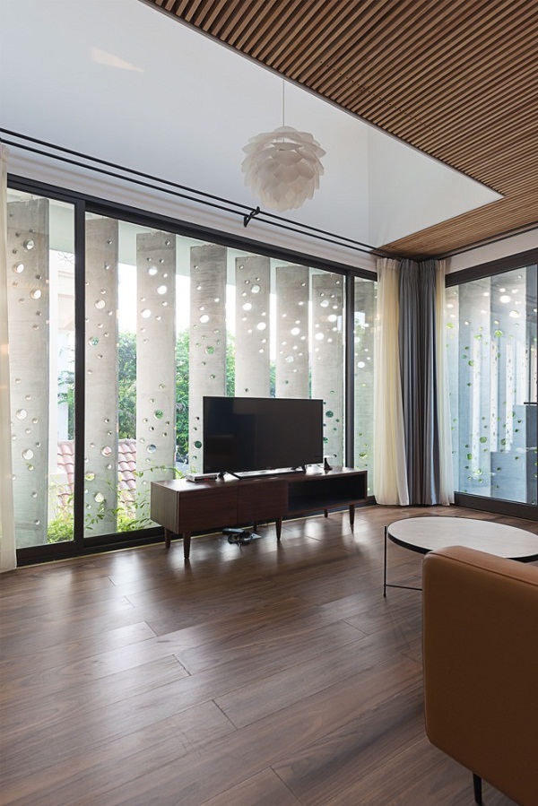 Vì trong nhà có người lớn tuổi hay bị ốm nên yêu cầu lớn nhất về công năng được đặt ra là không gian sinh hoạt chung sẽ xoay quanh hoạt động của họ. Phòng khách, nhà bếp cần đảm bảo tầm nhìn và sự giao tiếp giữa các thành viên với họ tại mọi thời điểm.
