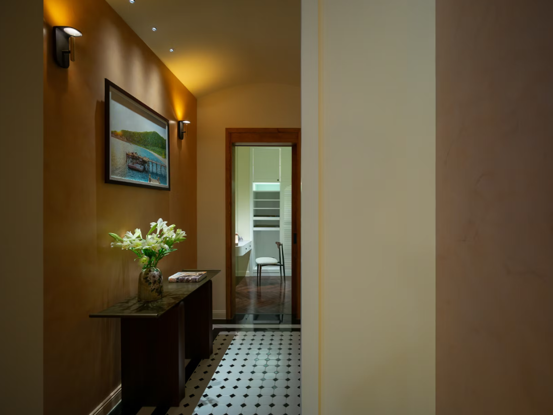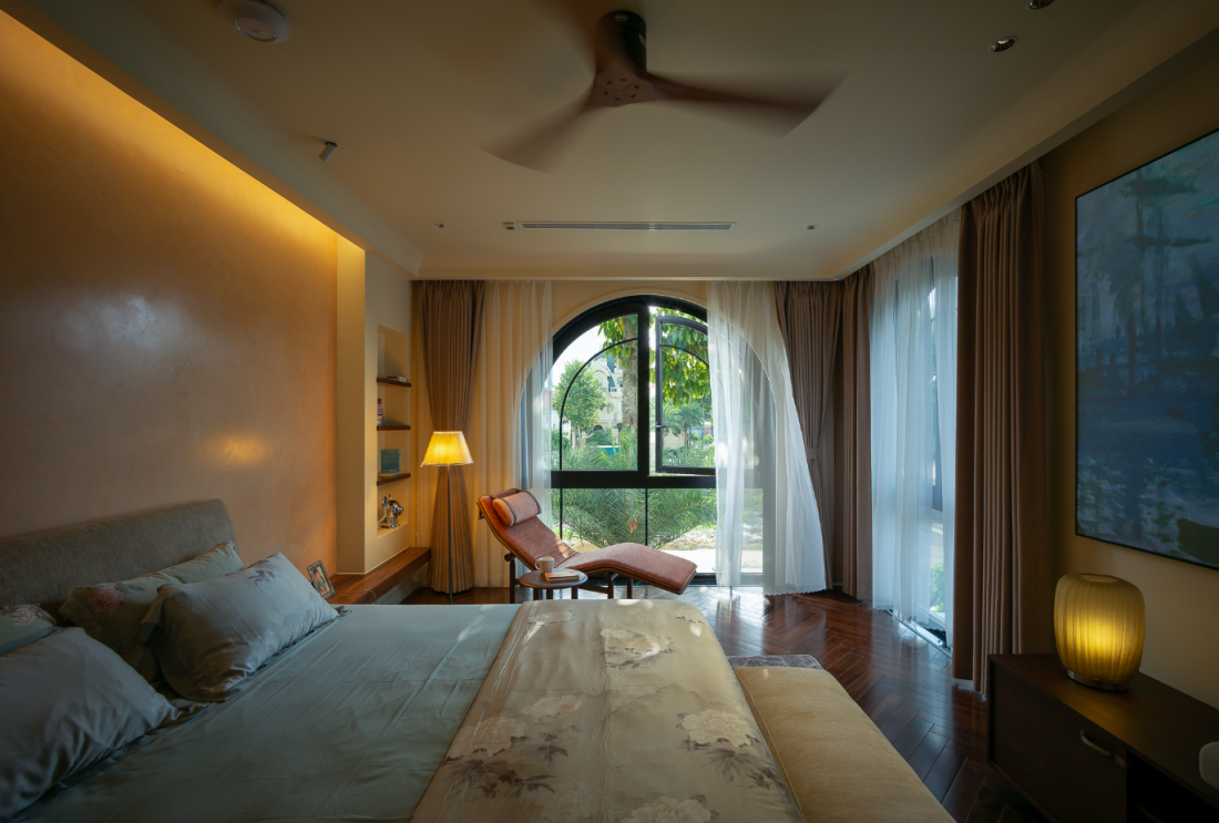 Đường nét mềm mại: Cửa vòm cong, các góc được bo tròn mềm mại, và sự chuyển tiếp mượt mà giữa tường và trần tạo nên một cái nhìn liền mạch, nhẹ nhàng cho toàn bộ không gian. Thiết kế tối giản nhưng đậm dấu ấn cá nhân: Đây là một không gian tối giản nhưng không hề lạnh lẽo, nơi mỗi góc đều mang lại khoảnh khắc thư giãn riêng biệt.