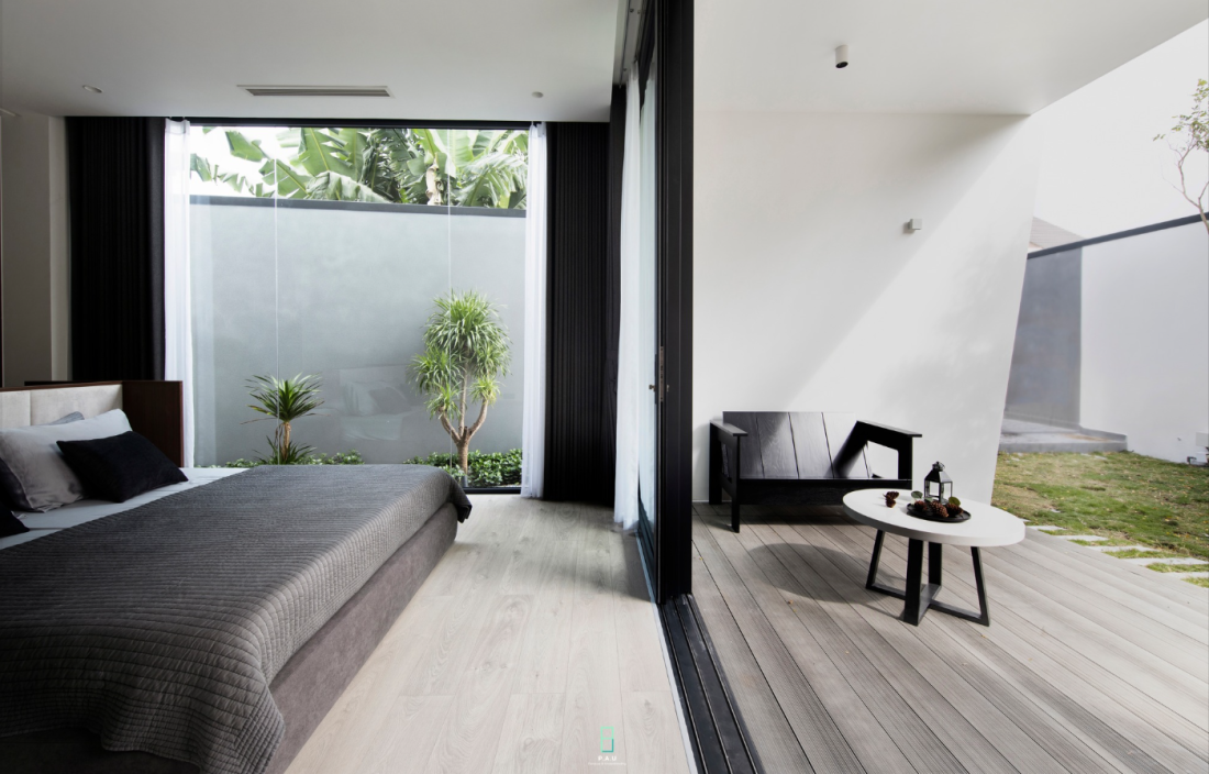 Hai mặt phòng ngủ đều nhìn ra khoảng sân nhỏ, gió và ánh sáng tự nhiên.