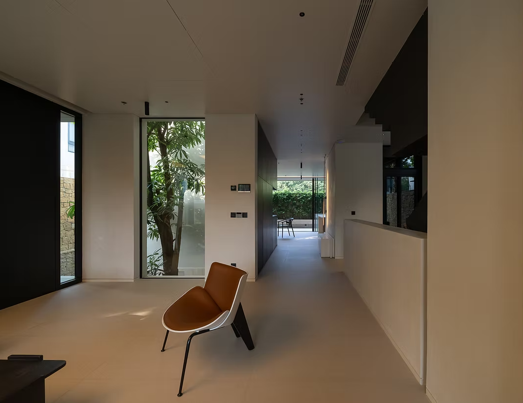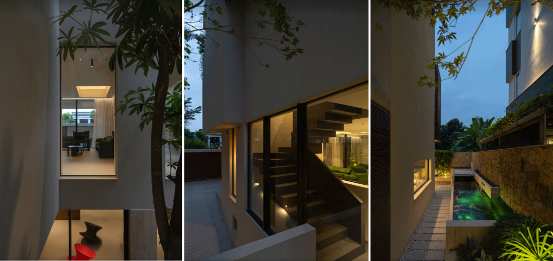 Nó tạo ra một sự kết nối vô hình nhưng mạnh mẽ giữa các thành viên trong gia đình: dù bạn đang ở phòng ngủ tầng trên hay bếp tầng dưới, bạn vẫn cảm nhận được nhịp thở chung của ngôi nhà qua khoảng không gian xanh này.