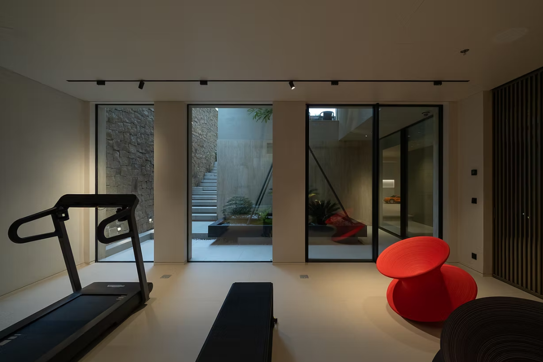 Một không gian thể thao riêng thoải mái tại nhà hướng khoảng thông tầng.