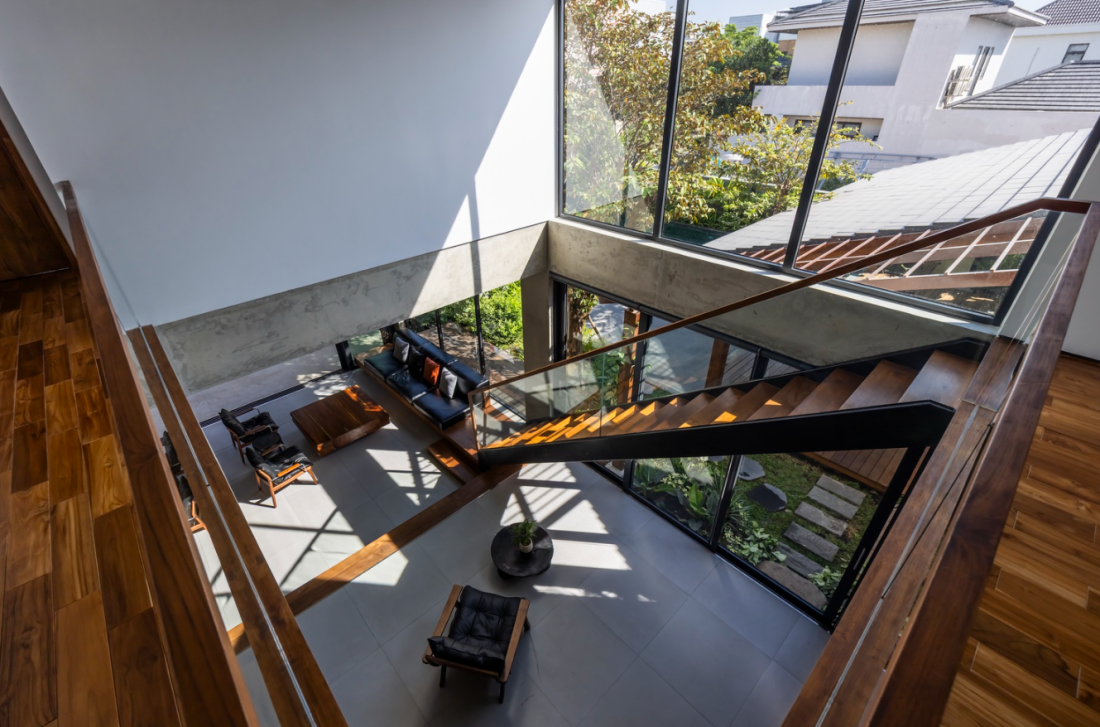 Một biệt thự ven sông Sài Gòn, nơi vẻ đẹp xưa cũ hòa quyện với sự đổi mới hiện đại. Thay vì phá bỏ hoàn toàn, giải pháp cải tạo là giữ lại khung kết cấu chính và biến nó thành một biểu tượng kiến trúc bền vững, tối ưu hóa tài nguyên, chi phí.