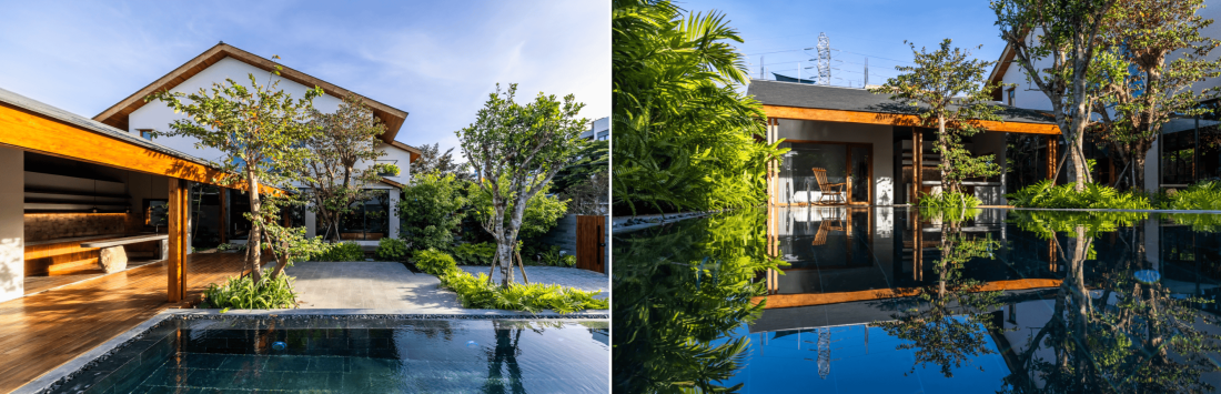 Nép mình bên sông Cổ Cò, biệt thự như một phần mềm mại của cảnh quan ven biển Đà Nẵng. Biệt thự không đối đầu với thiên nhiên mà ôm trọn lấy nó, trở thành một thực thể sống, hòa nhịp với nắng, mưa và gió sông đặc trưng của miền Trung.