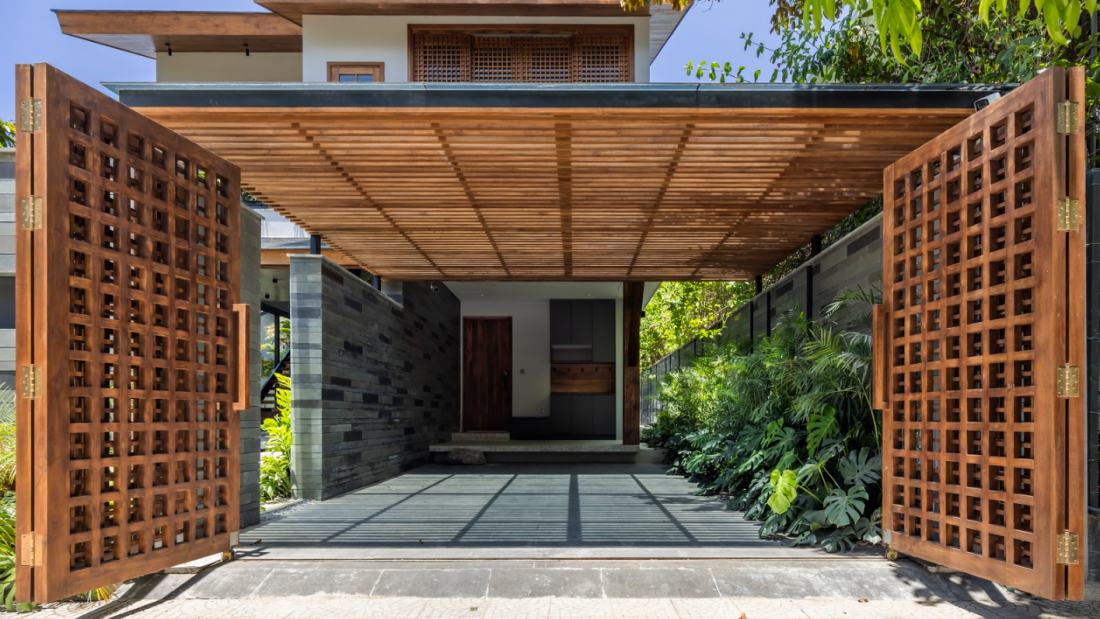 Biệt thự có hai cổng vào thiết kế khác biệt dành cho nhà chính và nhà nhỏ