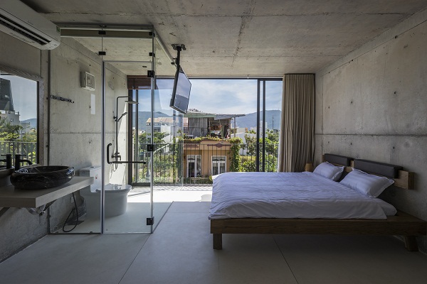Giải pháp về vật liệu: Kết cấu bê tông nguyên khối thường có quy trình xây dựng phức tạp đòi hỏi tay nghề tốt, với chất lượng và thời gian cao cần sự phối hợp cẩn thận, tinh chỉnh về cấu trúc và kỹ thuật. Để đồng bộ tất cả các bề mặt bê tông lộ ra như tường, sàn và trần, ngôi nhà bê tông sử dụng vật liệu đá “granit”, một trong những vật liệu phổ biến trong các ngôi nhà truyền thống của Việt Nam trong thập niên 80, được chế tạo thông qua vài nhân công lành nghề.