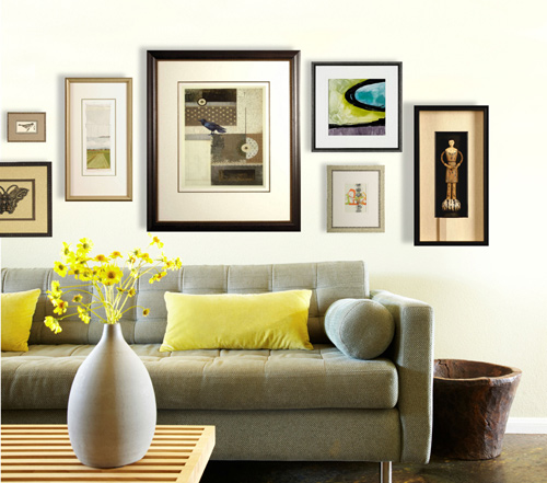 Cách dễ dàng nhất để tôn vinh một tác phẩm là treo chúng trong phòng khách, trên nền bức tường trắng.