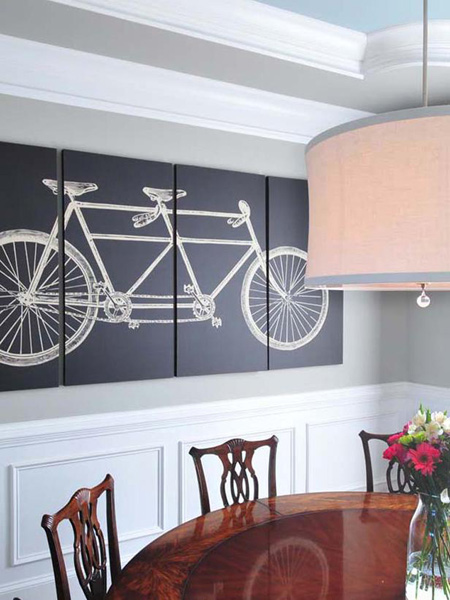 Bộ tranh hình chiếc xe đạp đủ để tạo ấn tượng cho phòng ăn.