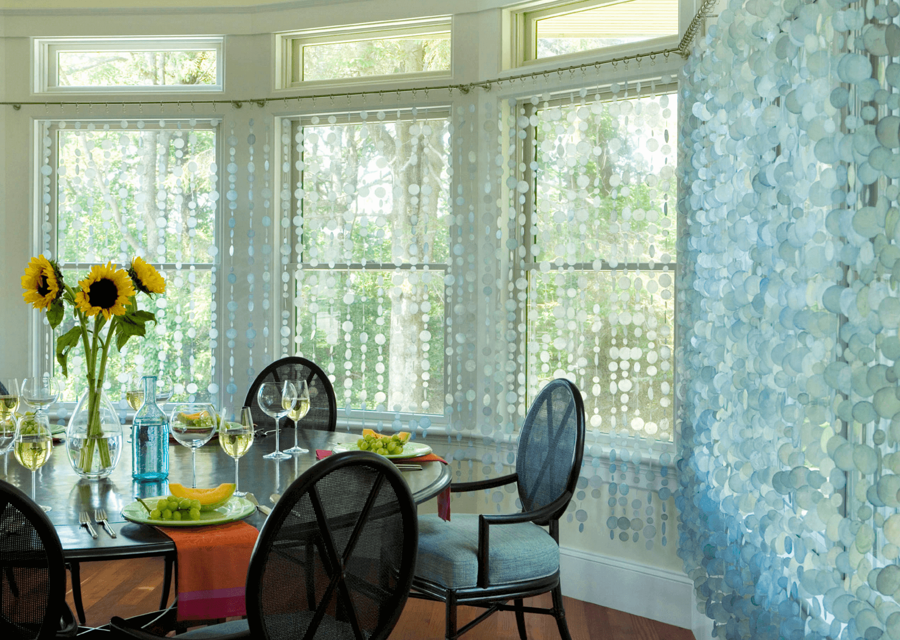 Với mành che kiểu dáng cách điệu cũng là chi tiết trang trí cho nhà đẹp hơn.