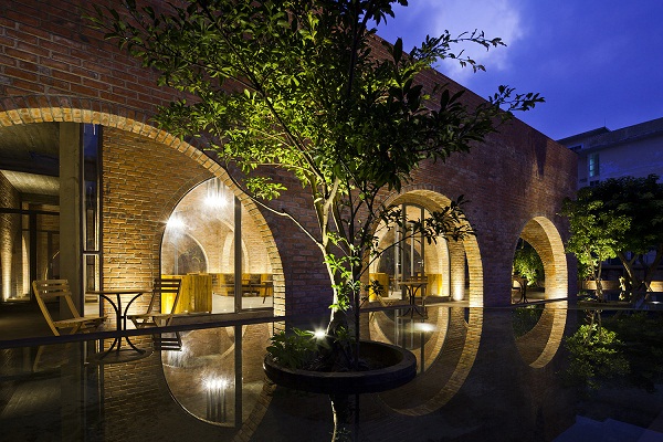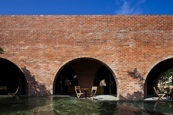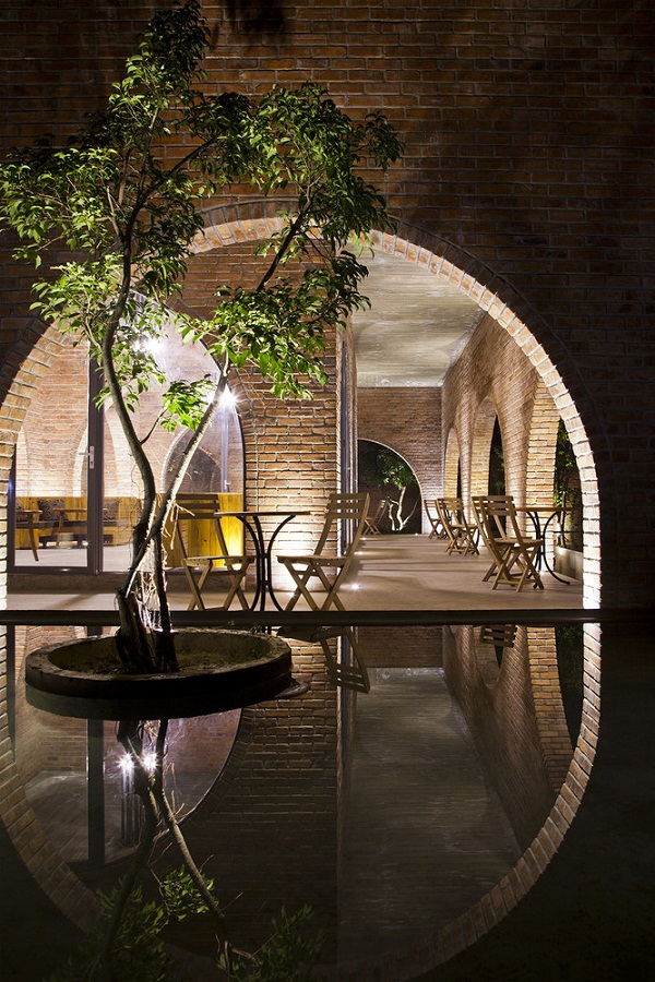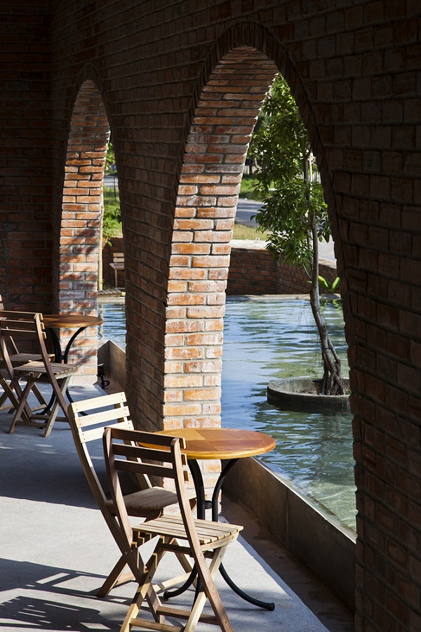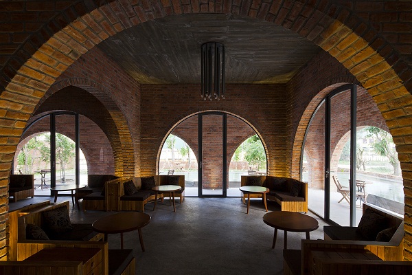 Không gian quán café được tạo thành từ 24 vòm gạch sử dụng ngôn ngữ hình ảnh độc đáo nhằm truyền tải cách chúng ta tập trung để tạo ra không gian kiến trúc. Hơn nữa, công trình được xây dựng theo cấu trúc này còn mang đến giải pháp tiết kiệm chi phí.