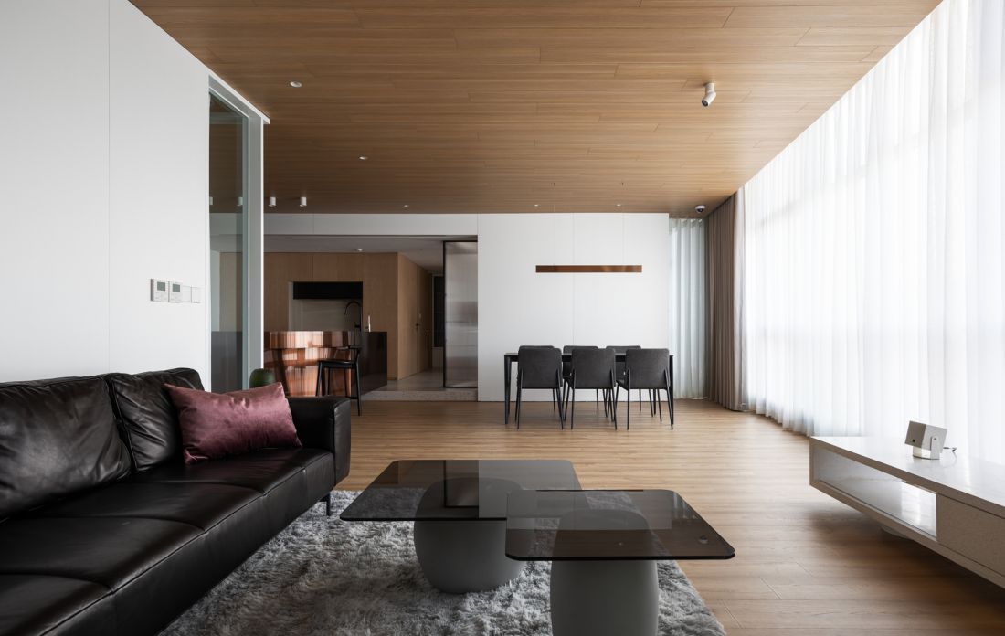 Giải pháp là sử dụng ½ diện tích cho nhà bếp và phòng khách đặt tại trung tâm căn hộ. Kiến trúc sư gọi đó là “không gian thư giãn” một góc nhìn paranoma trong không gian, không có điểm bắt đầu hay điểm kết thúc. Tổng thể và phòng ngủ đều được sử dụng kính mờ làm vách ngăn phòng. Hiệu ứng không gian mang lại tầm nhìn vô tận từ Đông sang Tây và giữ cho các thành viên trong gia đình luôn được kết nối.