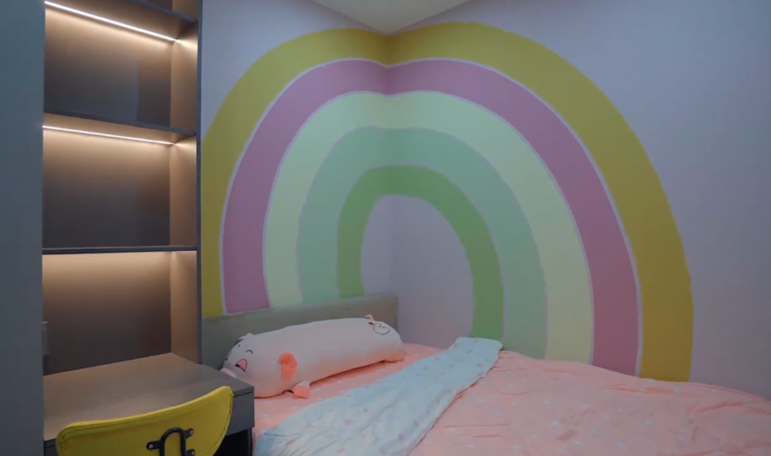 Gia chủ muốn ngôi nhà không chỉ đẹp mà còn sẵn sàng cho tương lai, nên đã sẵn sàng với một phòng ngủ nhỏ linh hoạt, tích hợp tủ âm tường. Dù diện tích hạn chế, nhờ tủ âm tường và giải pháp lưu trữ khéo léo và rộng rãi. Thiết kế này giữ căn hộ gọn gàng và dễ dàng chuyển đổi khi cần.