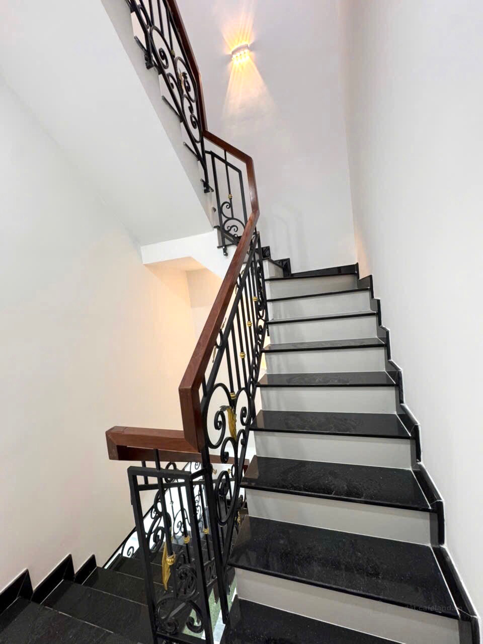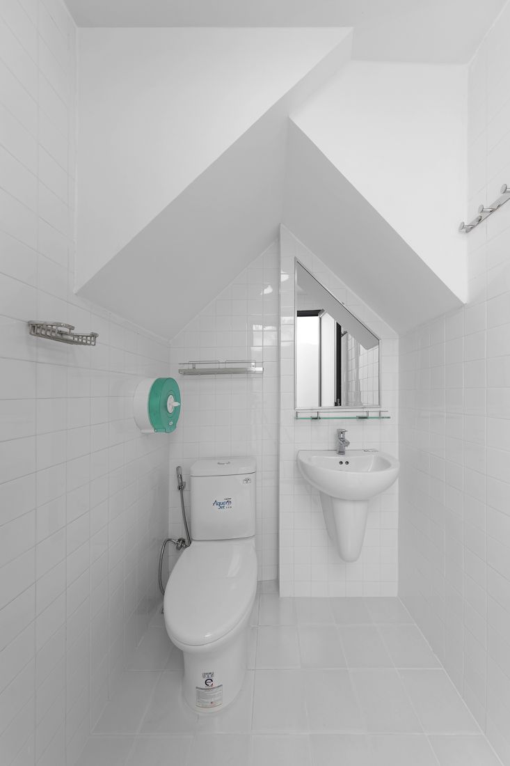 Phía sau là nhà vệ sinh được bố trí phía dưới cầu thang lên sân thượng.