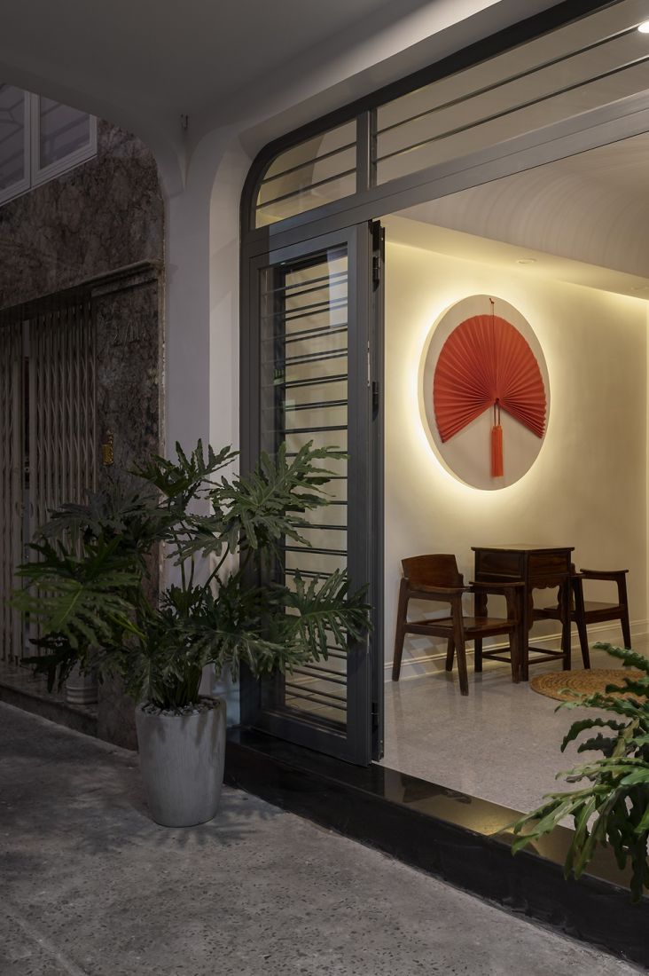 Mặt tiền được xử lý lại, với nhiều các ô thoáng bằng sắt có thể đóng mở được, vừa có tác dụng bảo vệ, vừa tạo tính liền mạch cho ngôn ngữ kiến trúc.