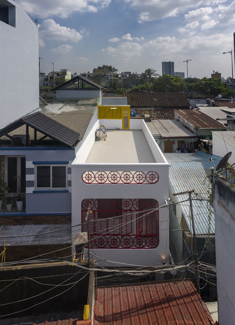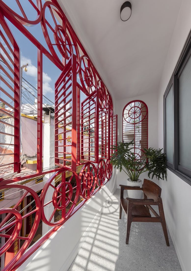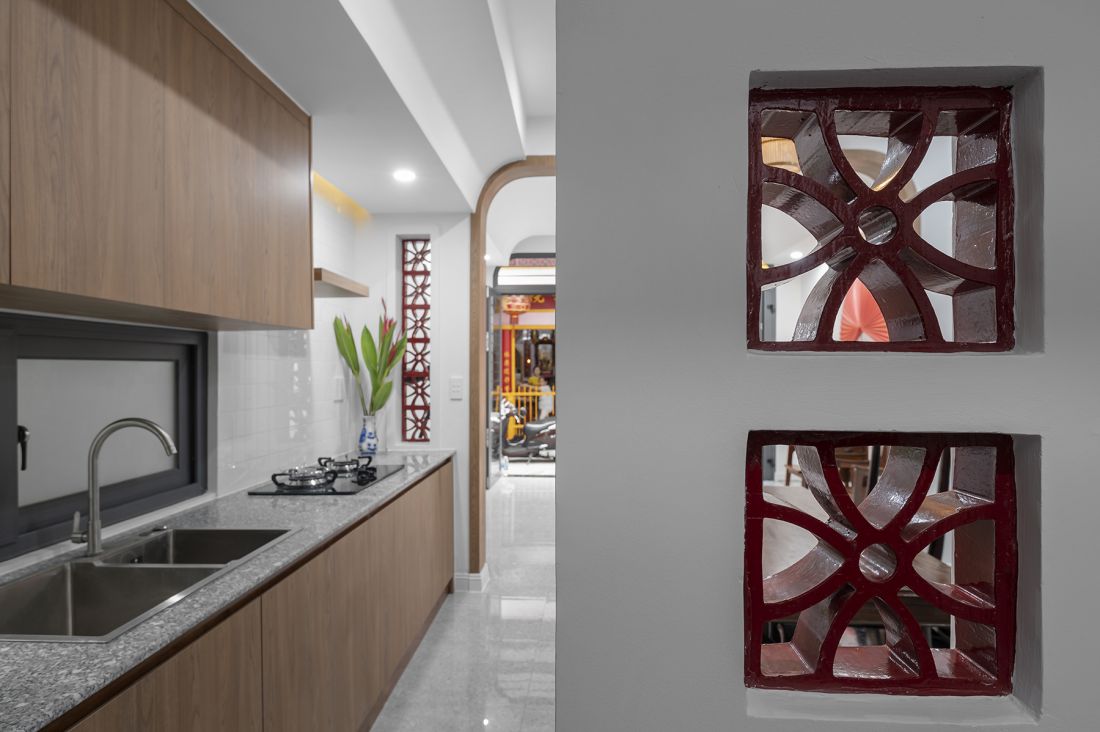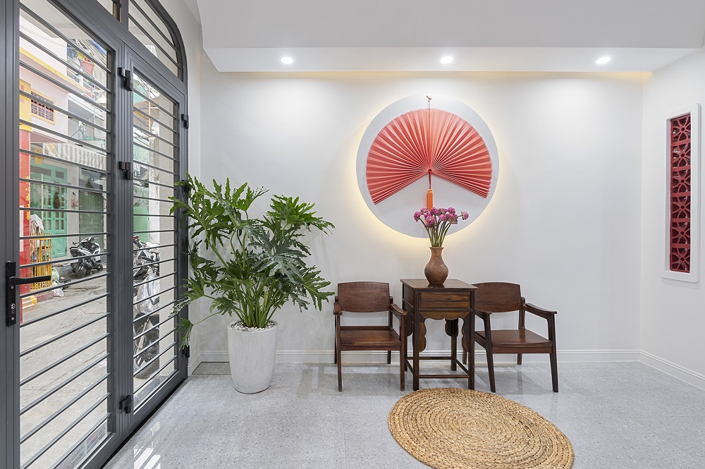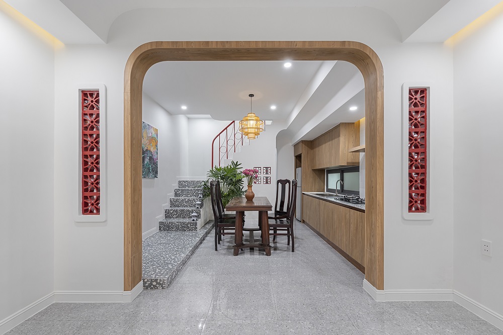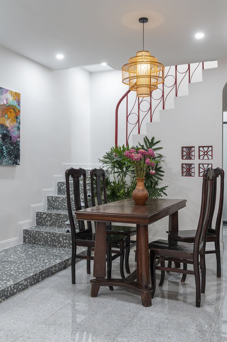 Những chi tiết như gạch bông gió, các mảng tường ngăn chia thoáng – hở, màu sơn của vật liệu, chi tiết của đèn trần,... tạo nên không gian gần gũi, quen thuộc như chính quê hương của gia chủ vậy.