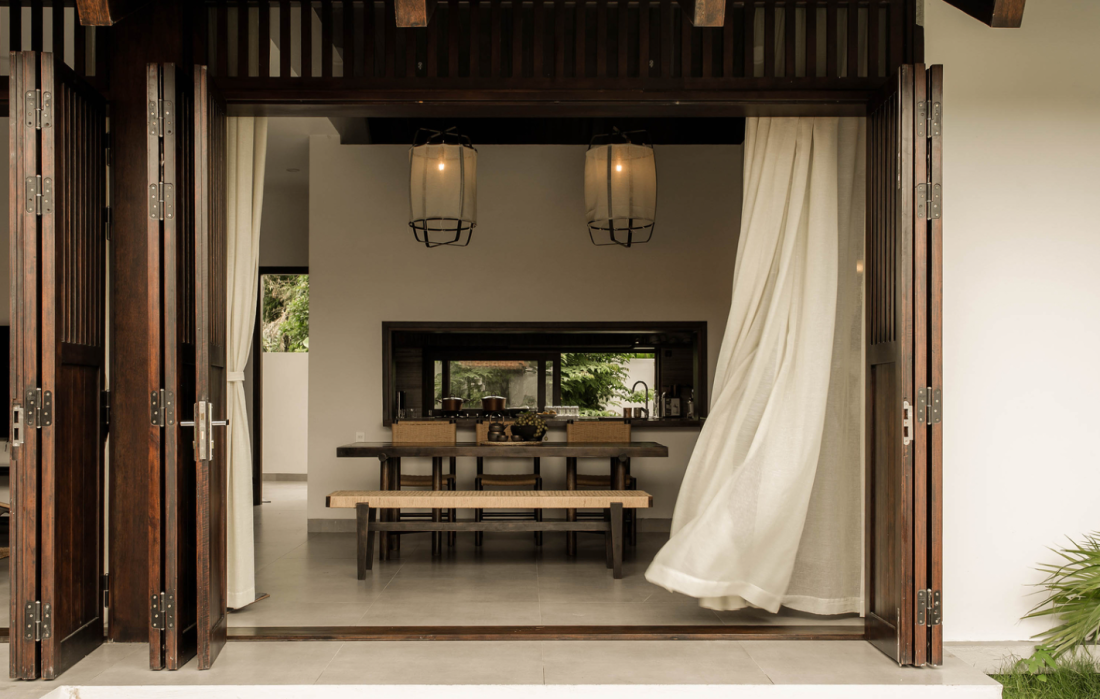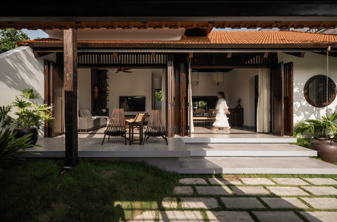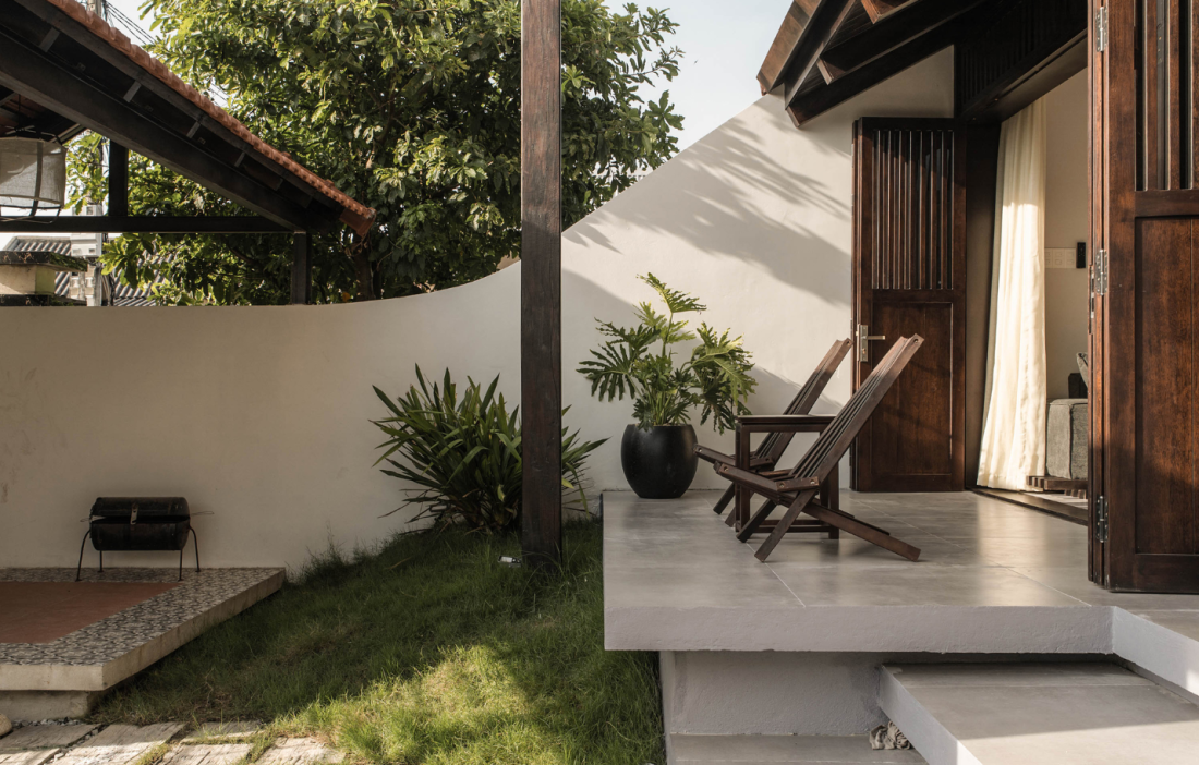 Những khoảng hiên này như cầu nối giữa nhà và thiên nhiên, giúp ngôi nhà luôn mát mẻ và gần gũi.