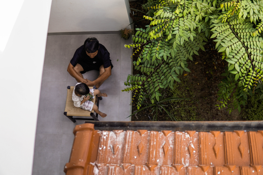 Tuy nhiên, kiến trúc sư đã tái tạo kiểu nhà này thành một phiên bản mới, loại bỏ một gian và một chái, tạo nên không gian vừa đủ, tiện nghi và thoáng đãng. Ngôi nhà vẫn giữ được hồn Việt, phù hợp cho cuộc sống bận rộn của gia đình hiện đại.