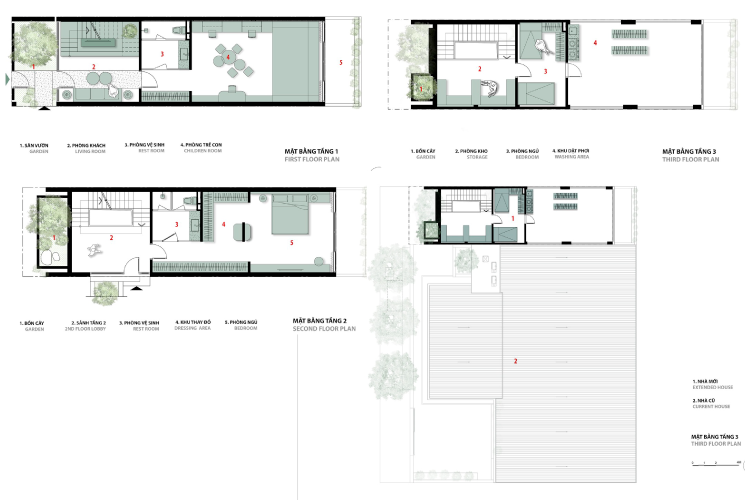 Mặt bằng kiến trúc cải tạo nhà mới hướng Tây cạnh nhà cũ theo phong cách kiến trúc tối giản tại Việt Trì.