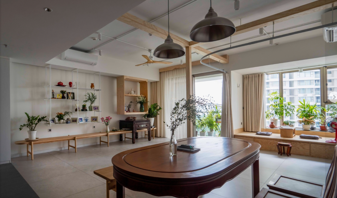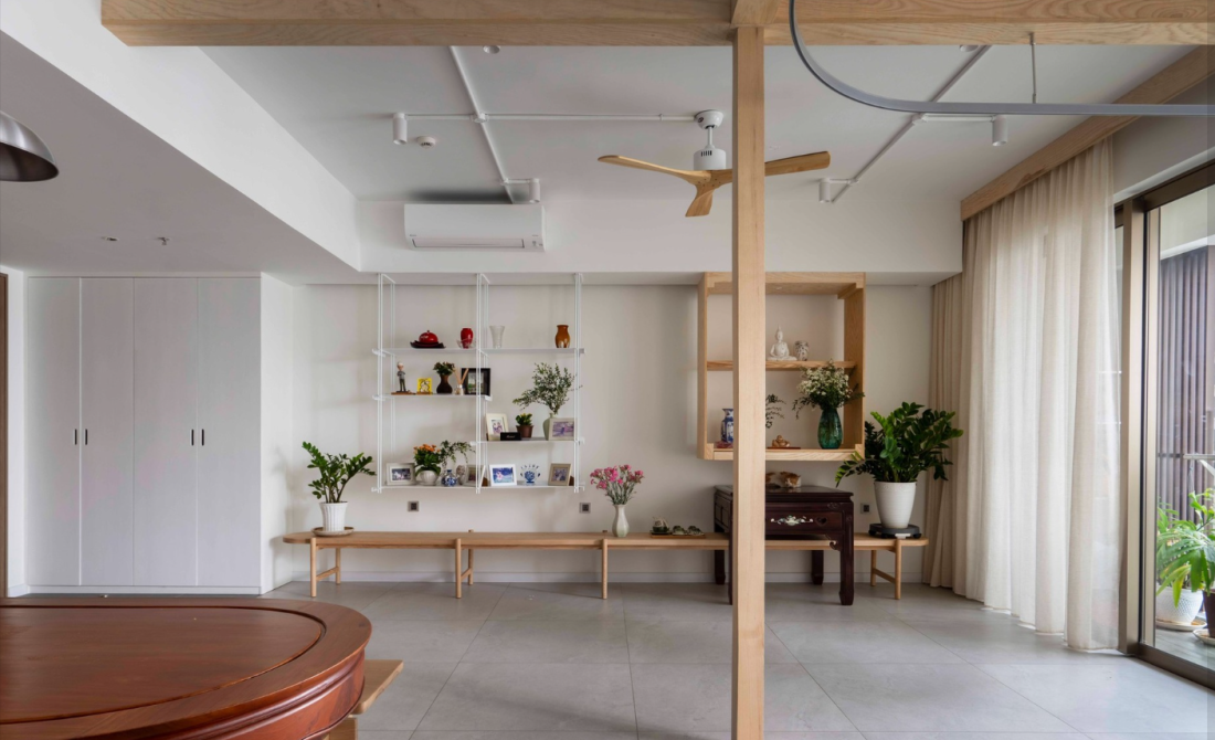 Sự sạch sẽ và gọn gàng của lớp nền này đóng vai trò như một khoảng thở, tạo điều kiện tối ưu cho các chức năng sinh hoạt và khả năng vận động của người lớn tuổi. trong đó phòng khách được thiết kế như một gallery của thời gian.