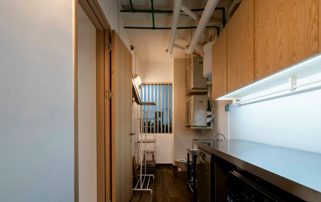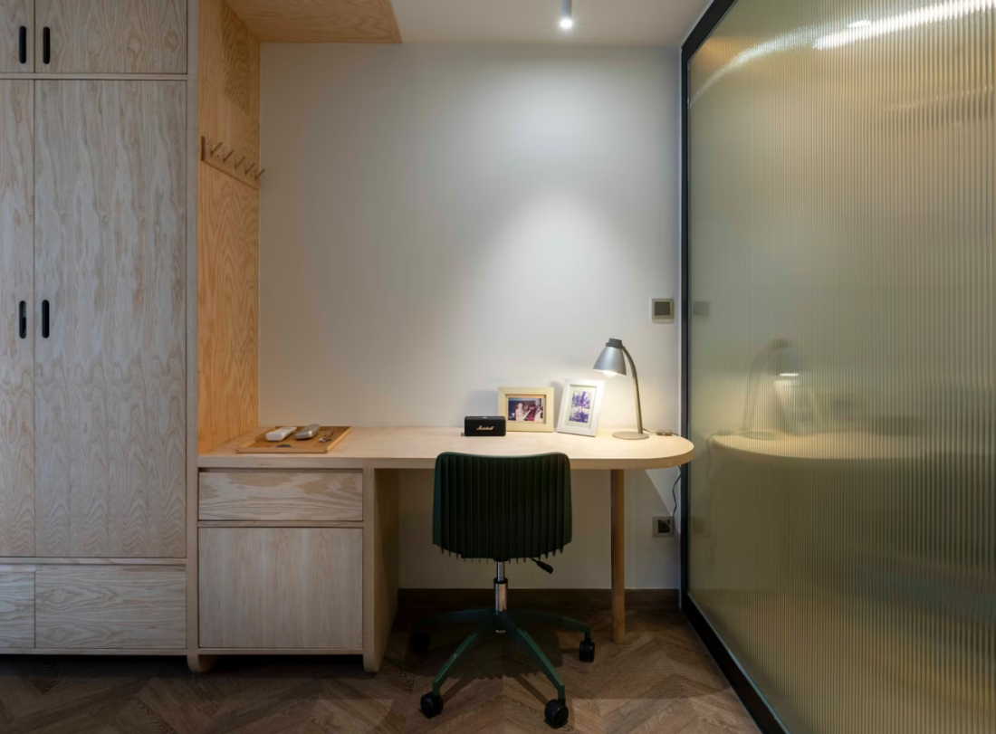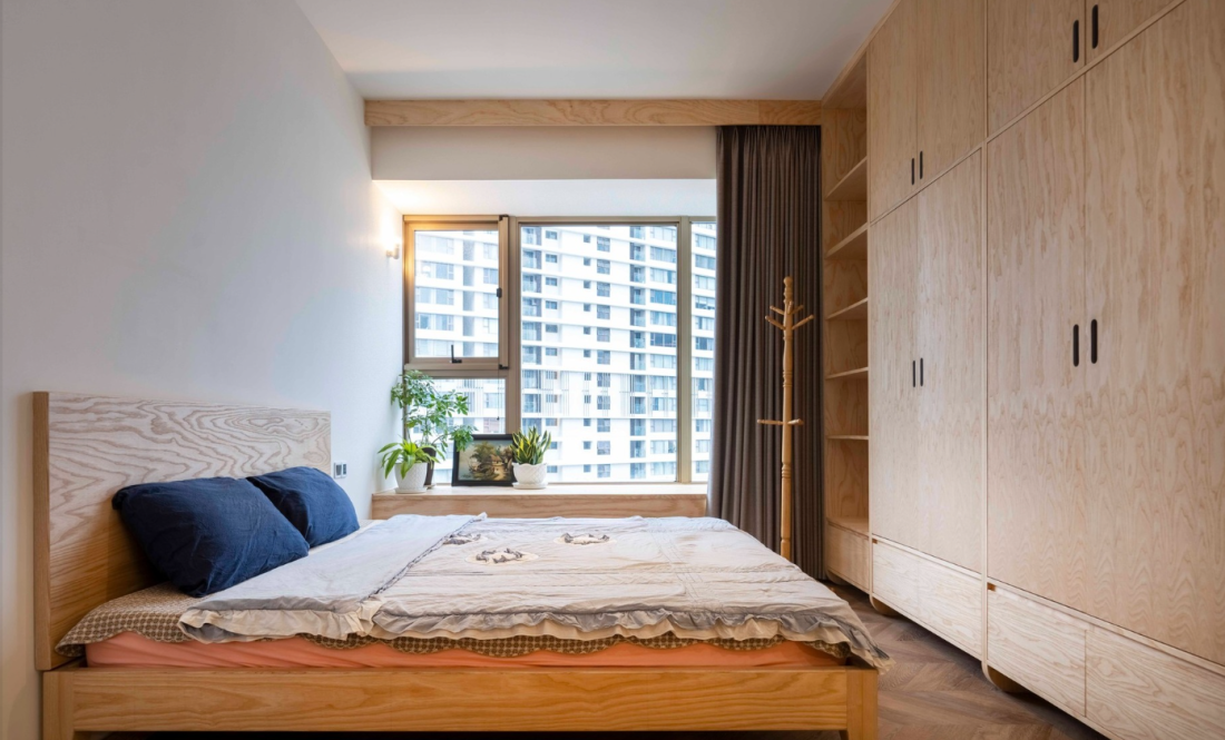 Để phá vỡ sự lạnh lẽo của bảng màu đơn sắc, lớp thứ hai được đưa vào với hệ thống nội thất gỗ thiết kế riêng. Những thớ gỗ tự nhiên, những tông màu ấm áp mang lại sự cân bằng thị giác và xúc giác. Tại đây, mỗi món đồ không chỉ là vật dụng mà là một điểm nhấn kiến trúc, giúp định vị không gian và tạo ra sự an toàn, vững chãi trong sinh hoạt hằng ngày.