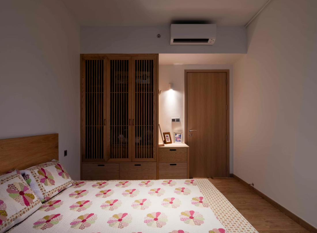 Với phòng ngủ dành cho người lớn tuổi thì các chi tiết bo tròn và hệ thống tay vịn tinh tế giúp tự do vận động mà không cảm thấy mình đang ở trong một không gian hỗ trợ y tế.