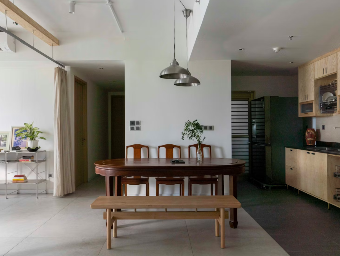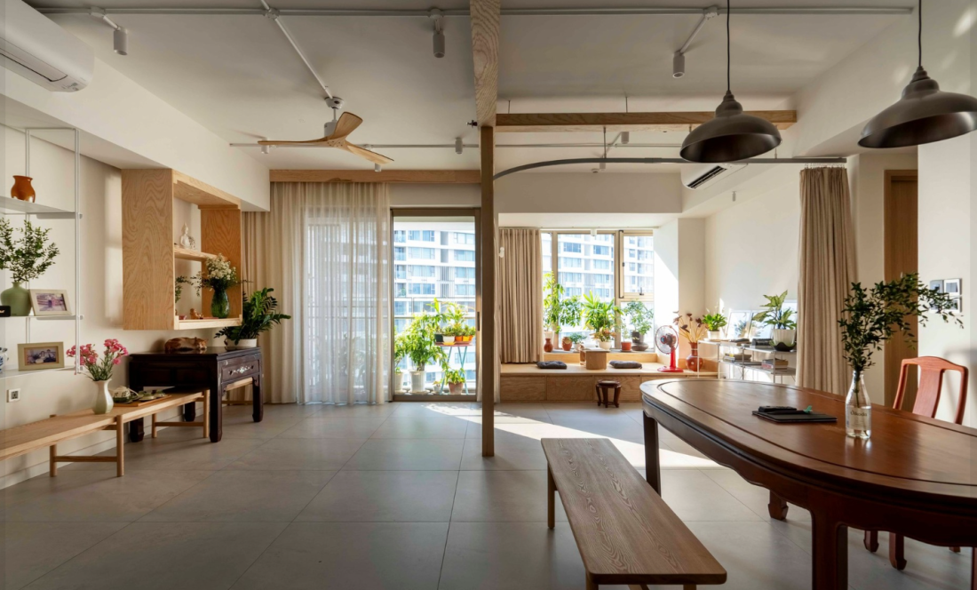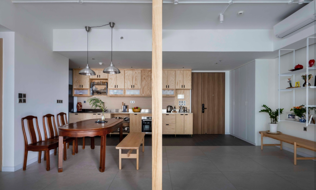 Tại căn hộ trên cao này, câu trả lời không nằm ở những bức tường ngăn cách mà ở sự mạch lạc của không gian. Bằng cách sử dụng ngôn ngữ của các khối tích và vật liệu tự nhiên, tạo nên một ốc đảo tĩnh lặng, nơi con người có thể thực sự chạm vào sự thư thái giữa lòng đô thị.
