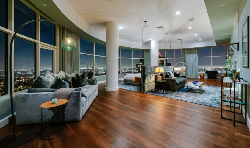 Căn hộ của Rihanna có tầm nhìn ra toàn thành phố Los Angeles. Các phòng có diện tích lớn. Phòng khách trang bị hai lò sưởi, một bộ sofa to và nhiều không gian sinh hoạt. Ngoài ra, căn hộ có 8 phòng tắm, phòng giải trí và rạp phim tại nhà.