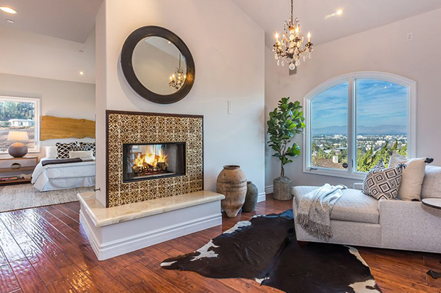 Một lò sưởi hai mặt, khu vực ngồi và trần vòm tạo ra sự tinh tế trong phòng ngủ chính này.