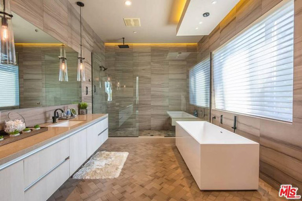Phòng ngủ chính có phòng tắm riêng lớn và tủ quần áo riêng, hoàn hảo cho bộ sưu tập quần áo ấn tượng của siêu mẫu.