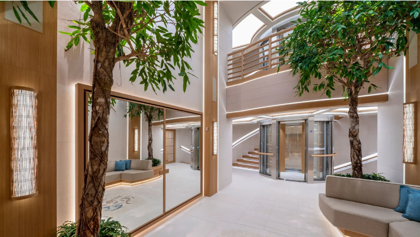 Du thuyền này có phòng xông hơi, sân bay trực thăng, hồ bơi, rạp chiếu phim...