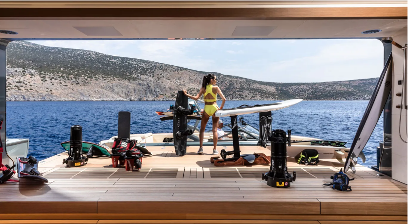 Du thuyền được trang bị một bể bơi 12m, có thể phân làm đôi bằng một bức tường di động ở giữa với một bên nước mặn, một bên nước ngọt; hoặc một bên nóng một bên lạnh.