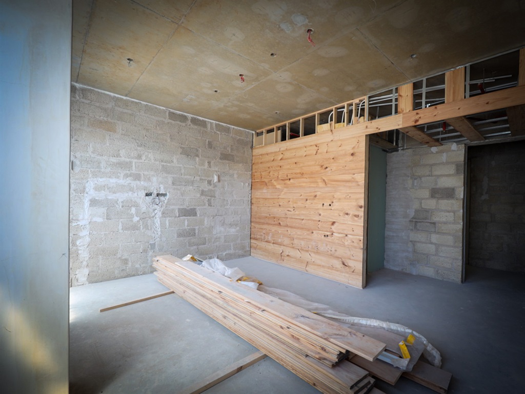 Trong khi tòa nhà dựa trên cấu trúc bê tông và xi măng cổ điển, các bức tường hoàn thiện bằng gỗ đều được làm từ các khối “bê tông gai dầu”. Một vật liệu có nhiều đặc tính cách nhiệt và chống cháy, đặc biệt được sử dụng ở châu Âu trong việc cải tạo nhiệt của các tòa nhà, nhưng trên hết là có lượng khí thải carbon âm.