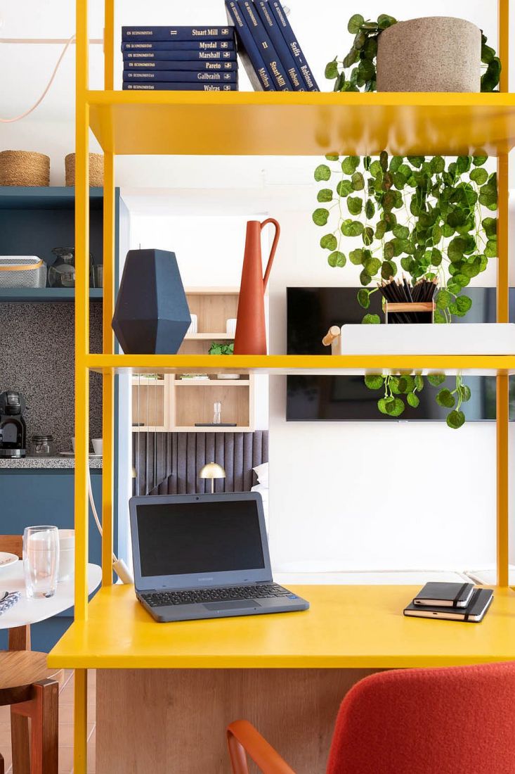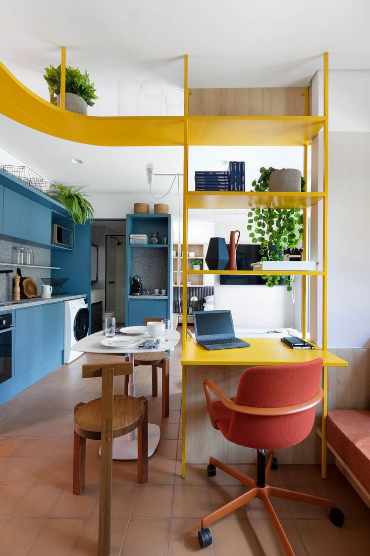 Một không gian nhỏ những vui tươi, sống động nhờ những tia sáng rực rỡ của màu xanh lam và vàng.