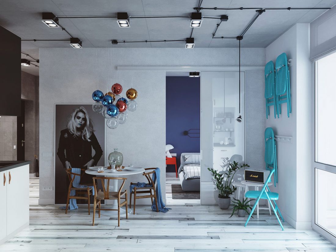 Một vài điểm nhấn màu xanh trong không gian trắng tạo nên sự thú vị, lạ mắt và đầy cá tính.
