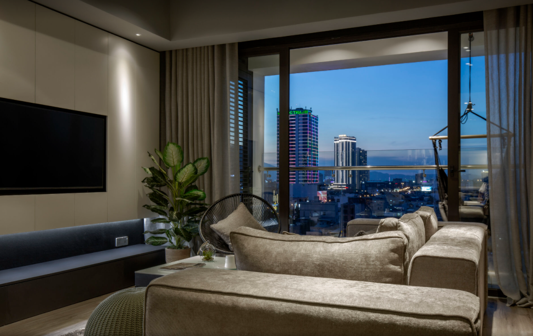 Biến phòng khách thành trung tâm của căn hộ. Chiếc sofa lớn kết hợp với nhiều loại ghế thư giãn khác nhau, tạo nên một không gian thoải mái cho mọi thành viên trong gia đình.
