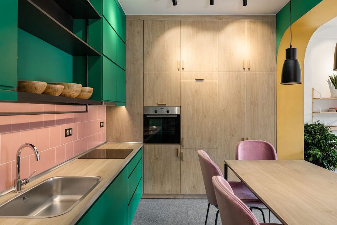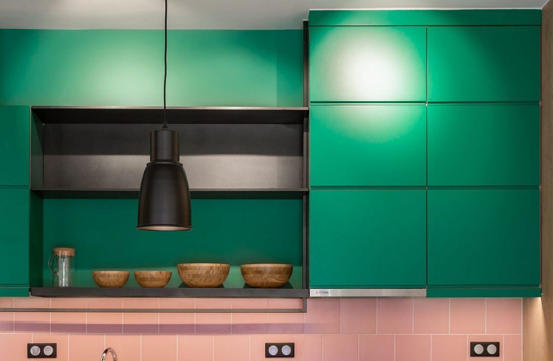 Một không gian bếp vui nhộn, bắt mắt với đầy màu sắc tươi vui.