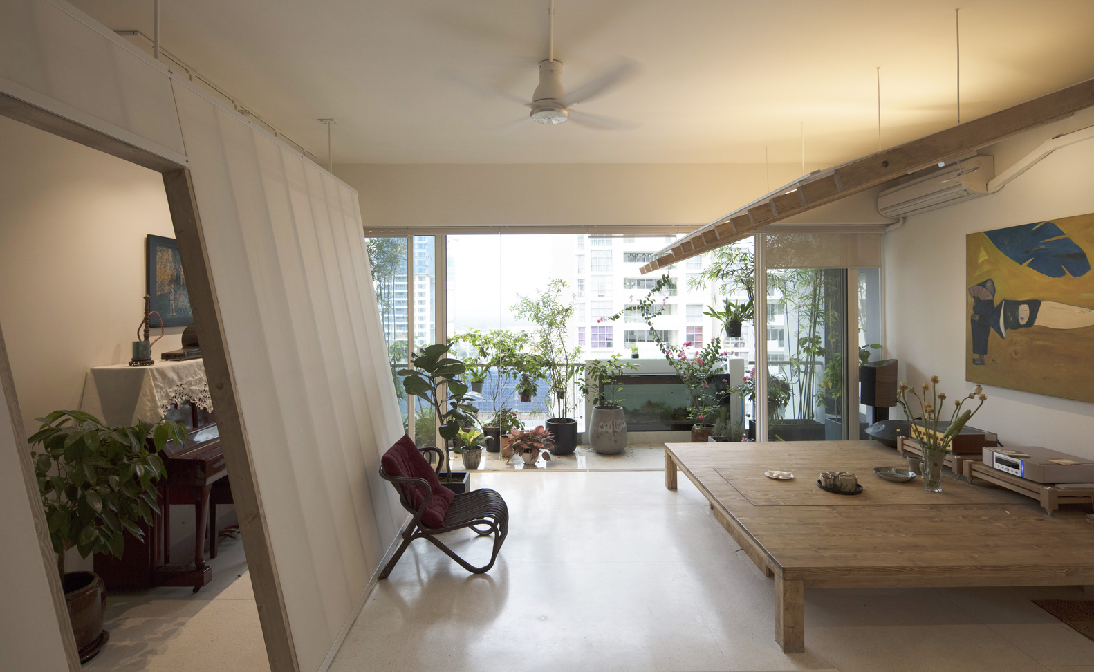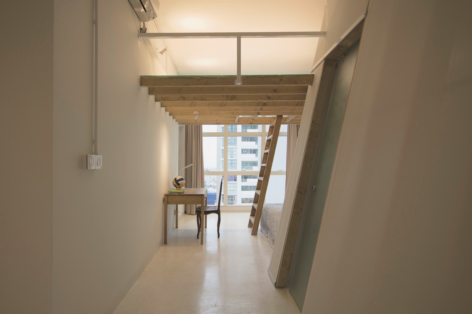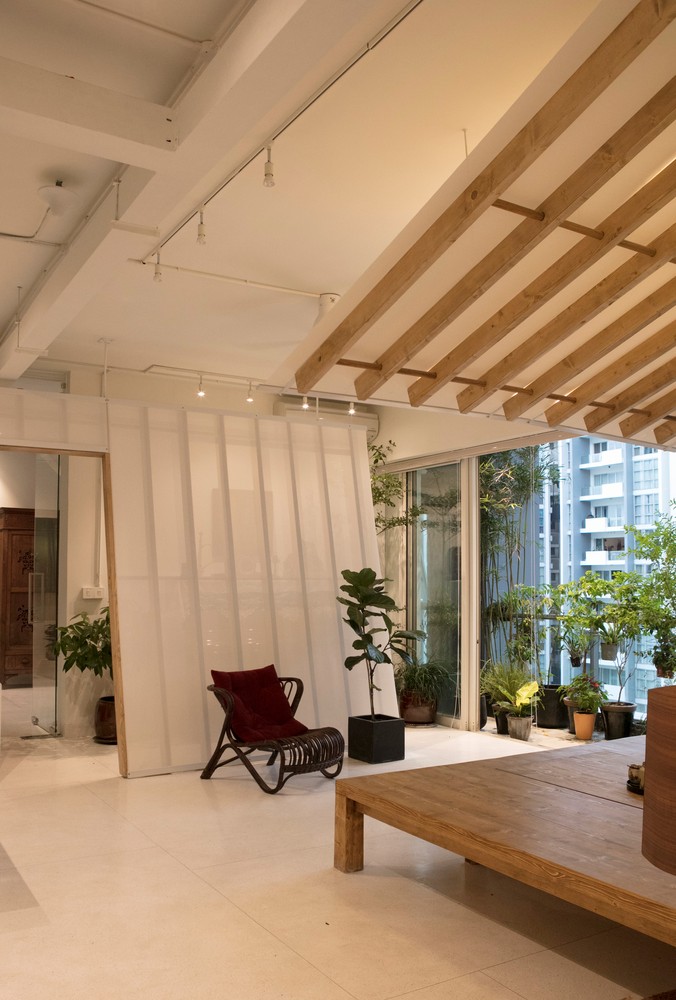 Các bức tường phân vùng và trần thạch cao che giấu được gỡ bỏ để trả lại cảm giác không gian thoáng đãng.