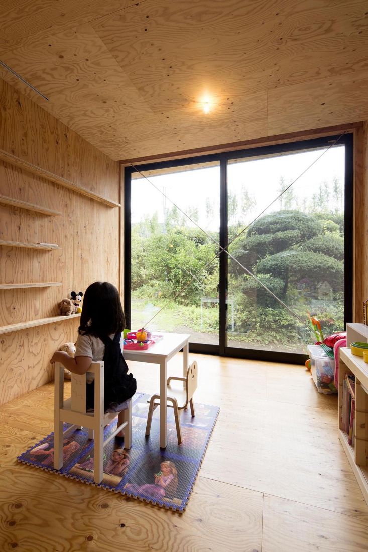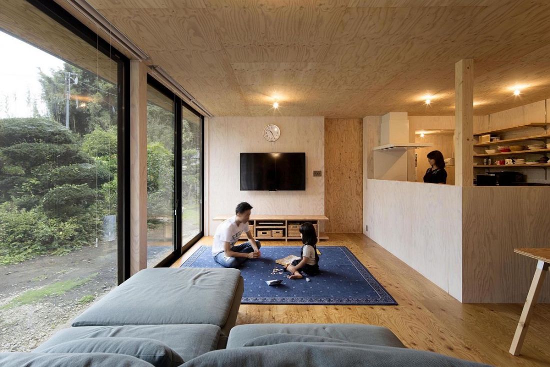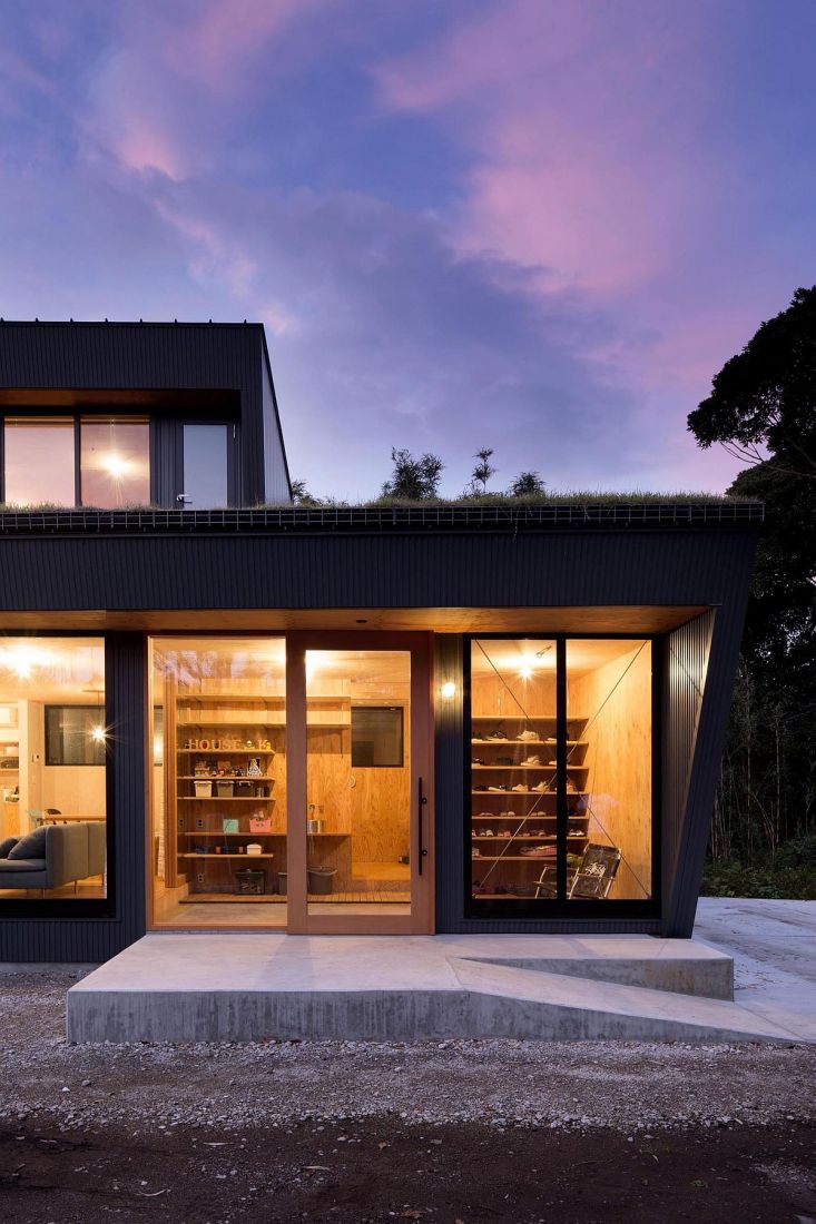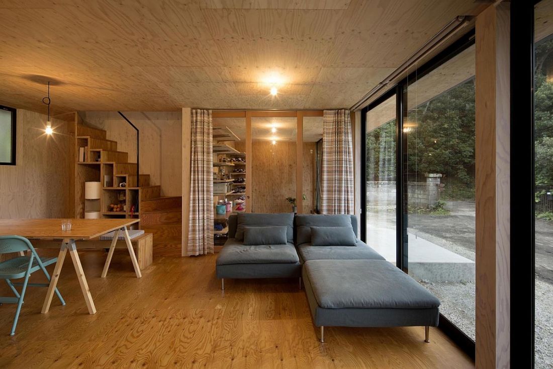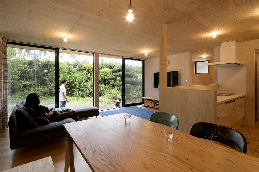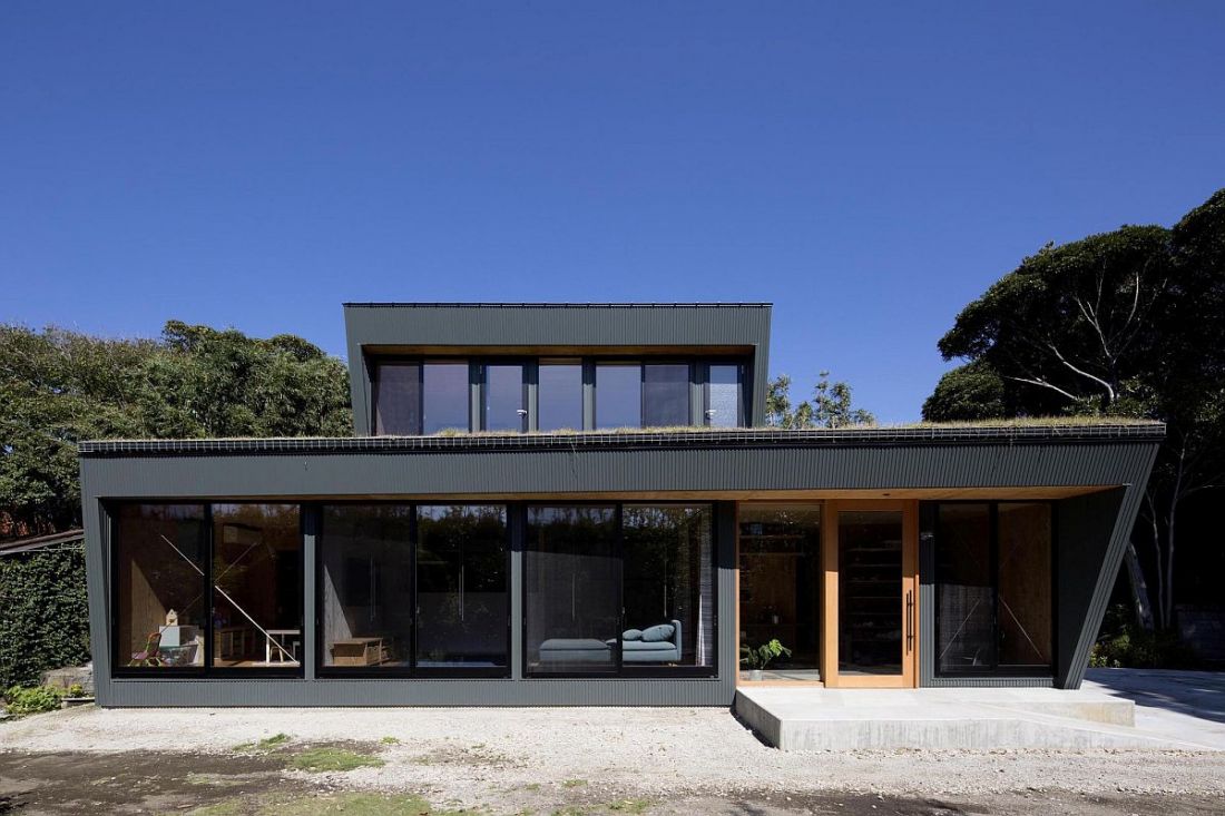 Nhìn từ bên ngoài, trông căn nhà khá đơn giản, việc sử dụng cửa kính trượt giúp ngôi nhà được gần gũi, tiếp xúc với không gian bên ngoài.