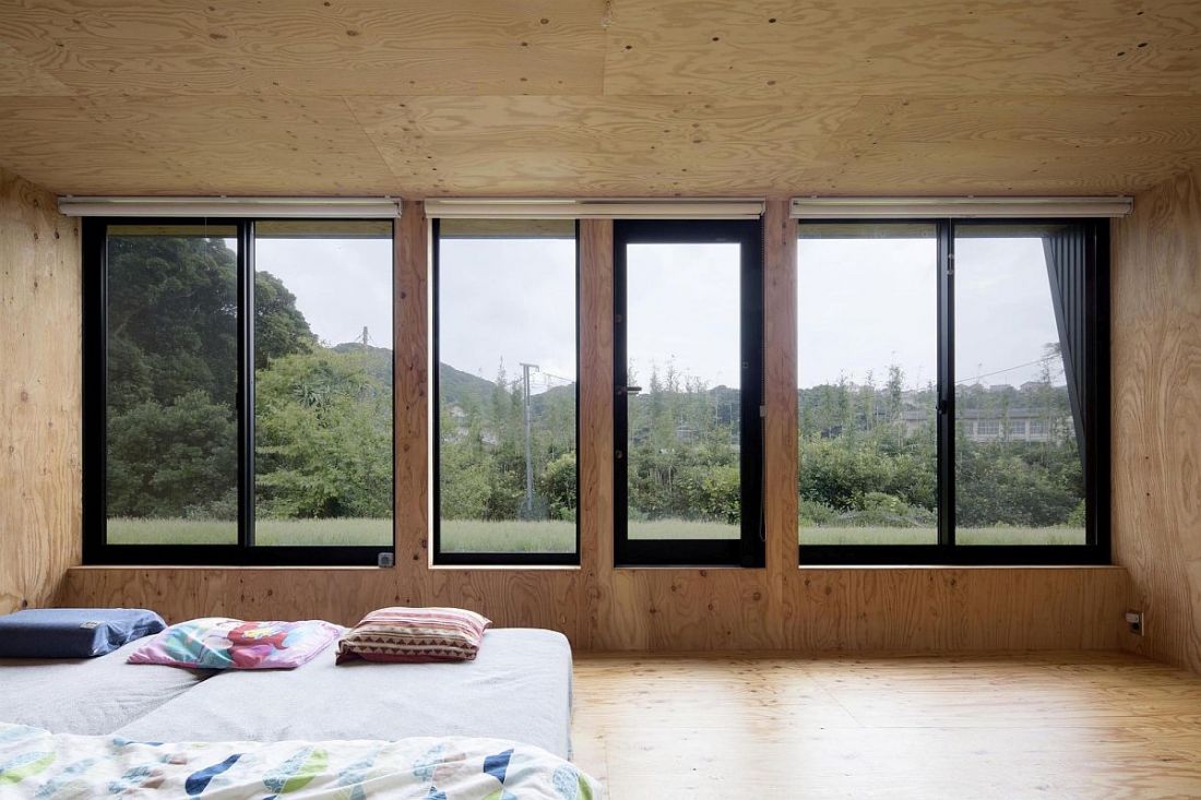 Phòng ngủ trên tầng 2 khá tinh tế, sáng tạo với nhiều cửa sổ.