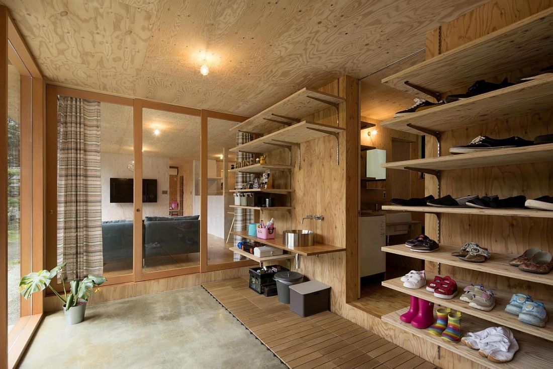 Việc thiết kế kệ mở thông minh mang lại không gian lưu trữ lớn từ giày dép cho đến các vật dụng trang trí.