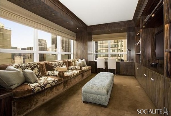 Căn chung cư cao cấp được thiết kế rất tiện nghi, hiện đại. Ngoài phòng khách, phòng ngủ sang trọng và thanh lịch, căn hộ còn có phòng giải trí, phòng đựng quần áo, nhà tắm kiểu spa... Ngôi nhà sử dụng cửa kính lớn bao quanh tạo không gian vô cùng rộng rãi, ánh sáng tràn ngập và có tầm nhìn tuyệt đẹp hướng ra toàn cảnh thành phố cũng như công viên Central Park.