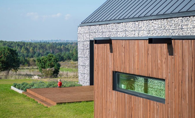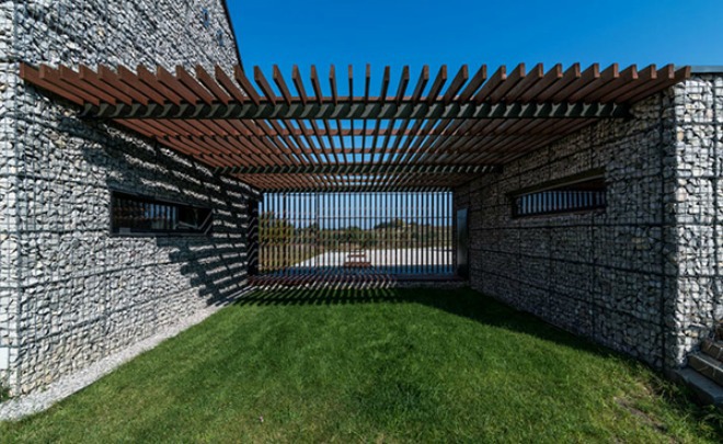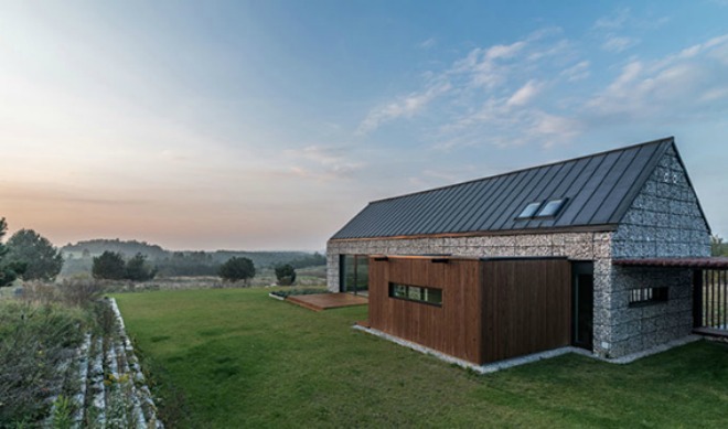 Ý tưởng tạo lớp vỏ bên ngoài ngôi nhà là rọ đá, kết hợp đá vôi bên trong giúp nhóm kiến trúc sư của Kropka Studio nhận các giải thưởng kiến trúc.