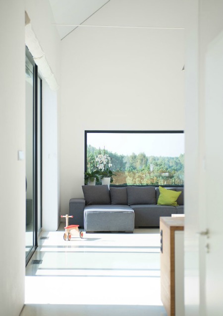 Nội thất căn phòng thoáng nhờ bức tường, sàn và trần nhà có màu trắng sáng.