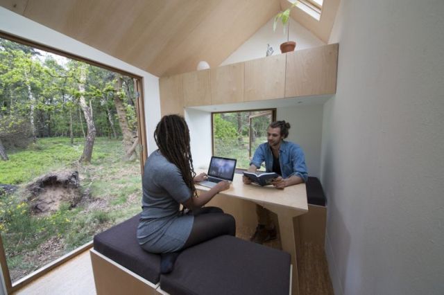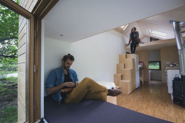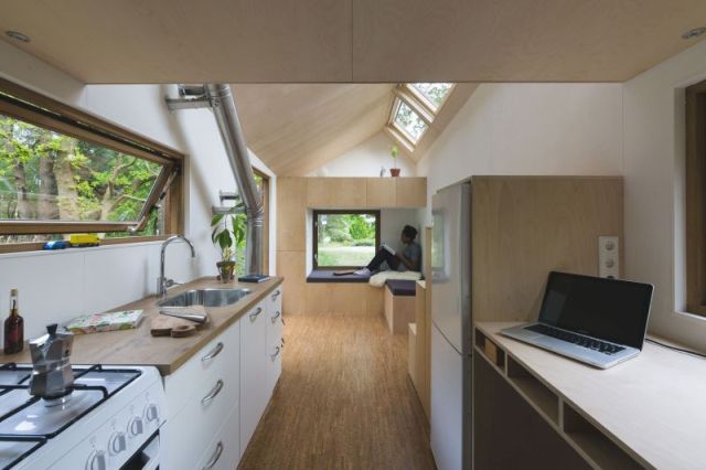 Tuy nhiên, diện tích nhỏ không phải là căn nhà này không đem lại sự thoải mái cho người dùng. Các nhà thiết kế đã đưa ra phương pháp đa chức năng, tức là kết hợp nhiều không gian chức năng tại cùng một phòng để tiết kiệm diện tích. Ví dụ, cửa trước của ngôi nhà nhỏ này thực ra được làm bằng hai cửa sổ lớn.