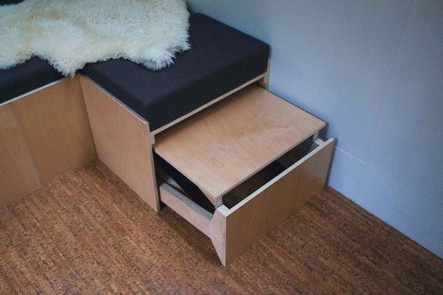 Chiếc ghế nhỏ này thực chất có thể biến thành một bàn ăn với 4 chỗ ngồi bất cứ khi nào cần thiết.