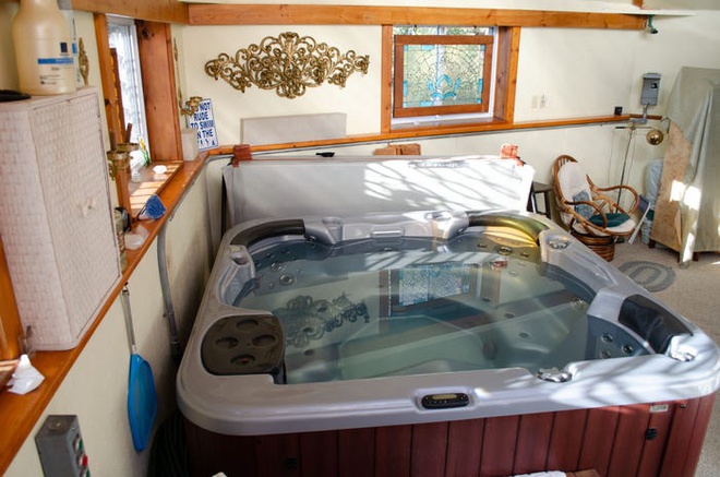 Trên đỉnh của tòa lâu đài còn có cả một bồn tắm nước nóng hiện đại.