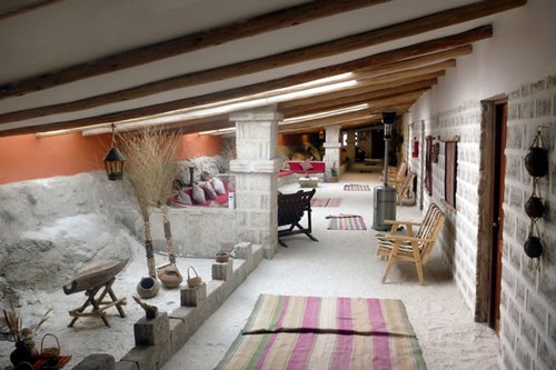 Khách sạn muối ở Bolivia Luna Salada: Nằm trên một ngọn đồi tại một ngôi làng ở thị trấn Colchani, Bolivia, khách sạn Luna Salada được xây dựng bằng khoảng một triệu khối muối. Tường, sàn nhà… cũng được tạo nên từ những hạt muối. Mọi dịch vụ tại đây đều rất đầy đủ gồm cả phòng tắm hơi…Chi phí một đêm tại đây khoảng 150USD.