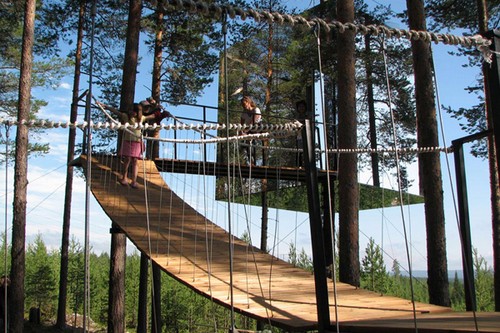 Khách sạn cây, Thụy Điển: Nằm tại một ngôi làng yên tĩnh của Harada, phía bắc Thụy Điển, các căn phòng tại khách sạn độc đáo này được treo trên cây với độ cao lên tới 6m. Các căn phòng được thiết kế với các kiểu kiến trúc khác nhau. Giá cho mỗi đêm ở tại đây là 550 USD.