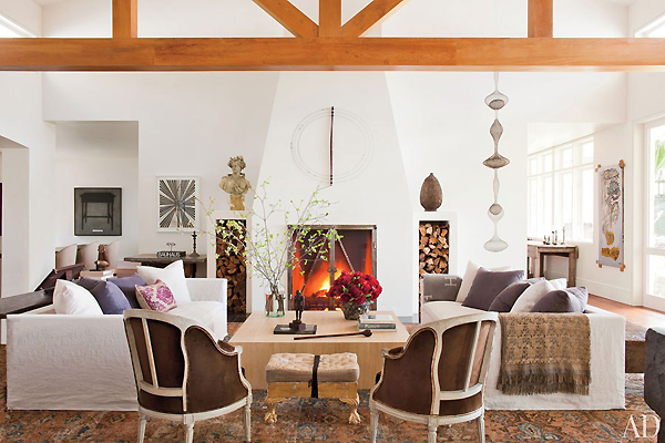 Ellen DeGeneres và vợ, nữ diễn viên Portia de Rossi, tại phòng khách của ngôi nhà. Chiếc bàn gỗ đặt trong phòng khách của họ có từ thế kỷ 18 (Ảnh: AD Mag)