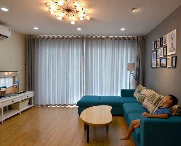 Với thiết kế 2 lớp sáng tạo, rèm cửa phòng khách hợp lý với tông màu nội thất tinh tế mà sang chảnh hơn.